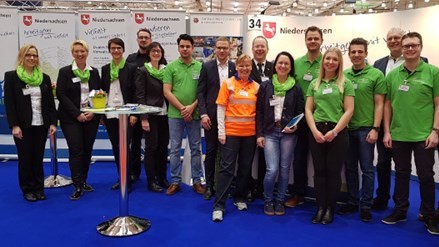 Am Stand konnte die Vielfalt des Arbeitgebers gesehen werden. Hier waren Straßenwärter beim Brückenbau und Stipendiaten/Bachelor –Nachwuchskräfte im Dienste der Nachwuchsgewinnung tätig. Jonas Wortmann, Daniela Busche und Kerstin Crantz hielten mit Unterstützung junger Nachwuchskräfte über das „duale Studium beim Land Niedersachsen“ einen Vortag. Neben der Vorstellung des Internetportals des Landes (www.karriere.niedersachsen.de) waren persönliche Gespräche, gerade auch mit den jungen Kolleginnen und Kollegen, besonders wichtig.