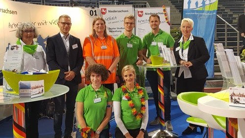 Das Land Niedersachsen ist bei der diesjährigen „Jobmesse Hannover“ mit dem Award „Stand der Messe 2018" ausgezeichnet worden. Das Messe-Team vom „Arbeitgeber mit Vielfalt“ hat sich mit seinem breit gefächerten Angebot gegen mehr als 110 weiteren Ausstellern durchgesetzt. Die „Jobmesse" ist eine der bedeutendsten Berufs- und Ausbildungsmessen in der Region. Der Award ist ein echter Publikumspreis, denn ausschließlich die Besucherinnen und Besucher haben den Stand des Landes Niedersachsen u. a. in den Kategorien der Angebotsdarstellung, der Freundlichkeit des Standpersonals und der professionellen Beratung zum besten Stand der Messe gewählt.
